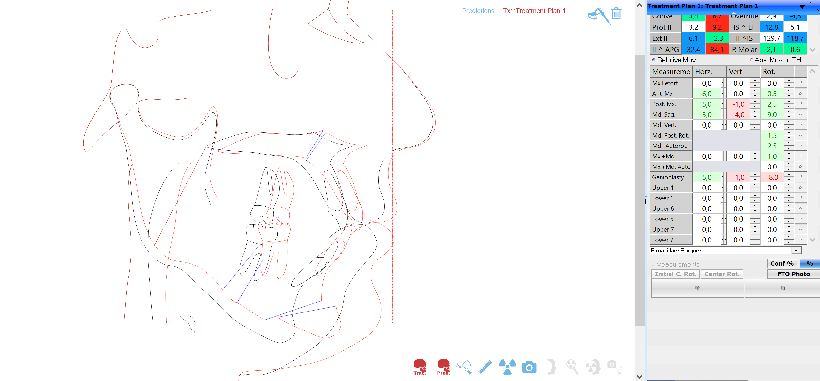 Następnie rekomendujemy lub wdrażamy postępowanie ortodontyczne. Po jego zakończeniu przystępujemy ponownie do analiz wszystkich parametrów w obrębie twarzy i przygotowujemy plan leczenia chirurgicznego obejmjący przesunięcia kostne z zakresie układu szkieletowego z uwględnieniem koncepcji FAB.